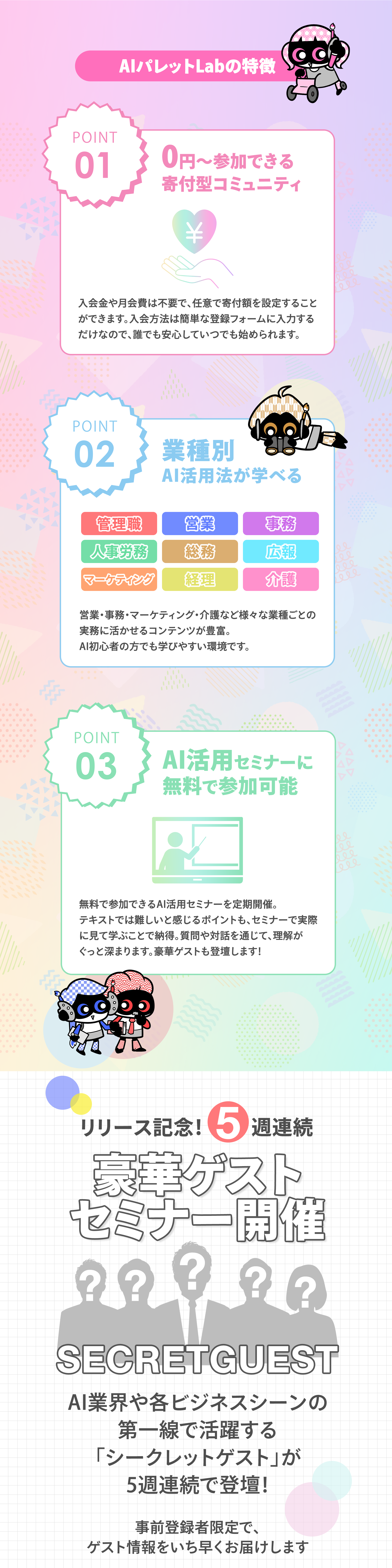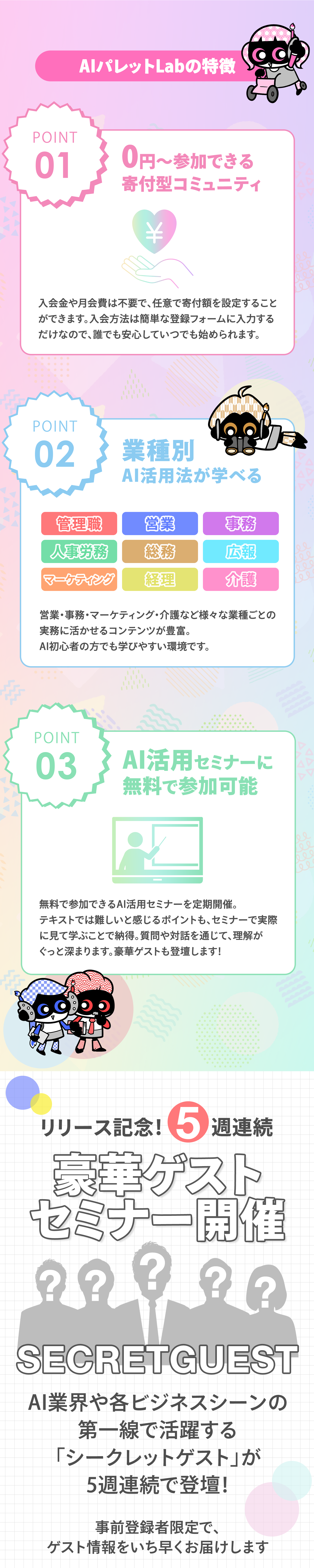 A. もちろんです。『AIパレットLab』はAI初心者の方を対象に設計されています。基礎の基礎から学べるコンテンツや、初心者向けのセミナーを豊富にご用意していますのでご安心ください。